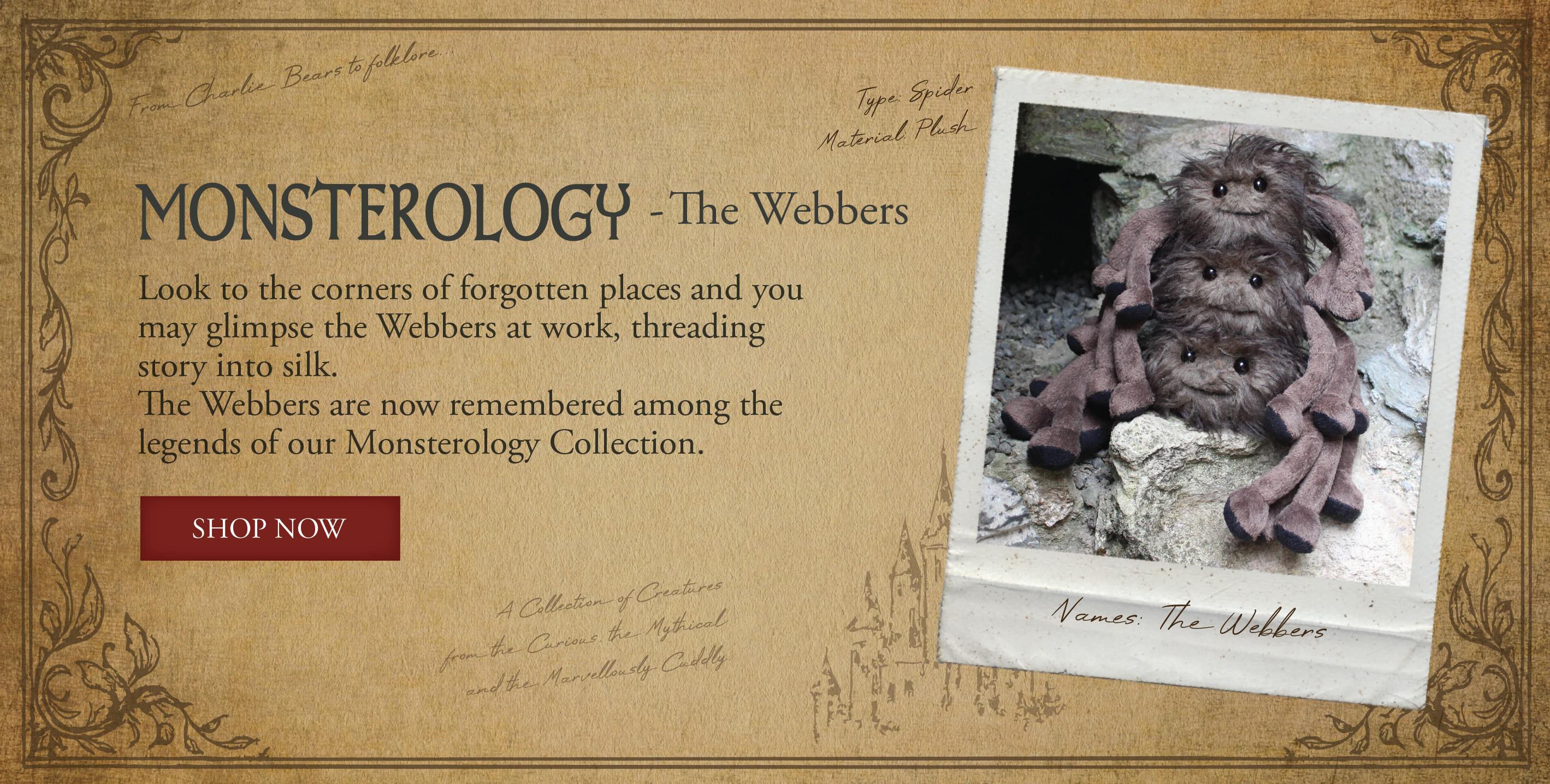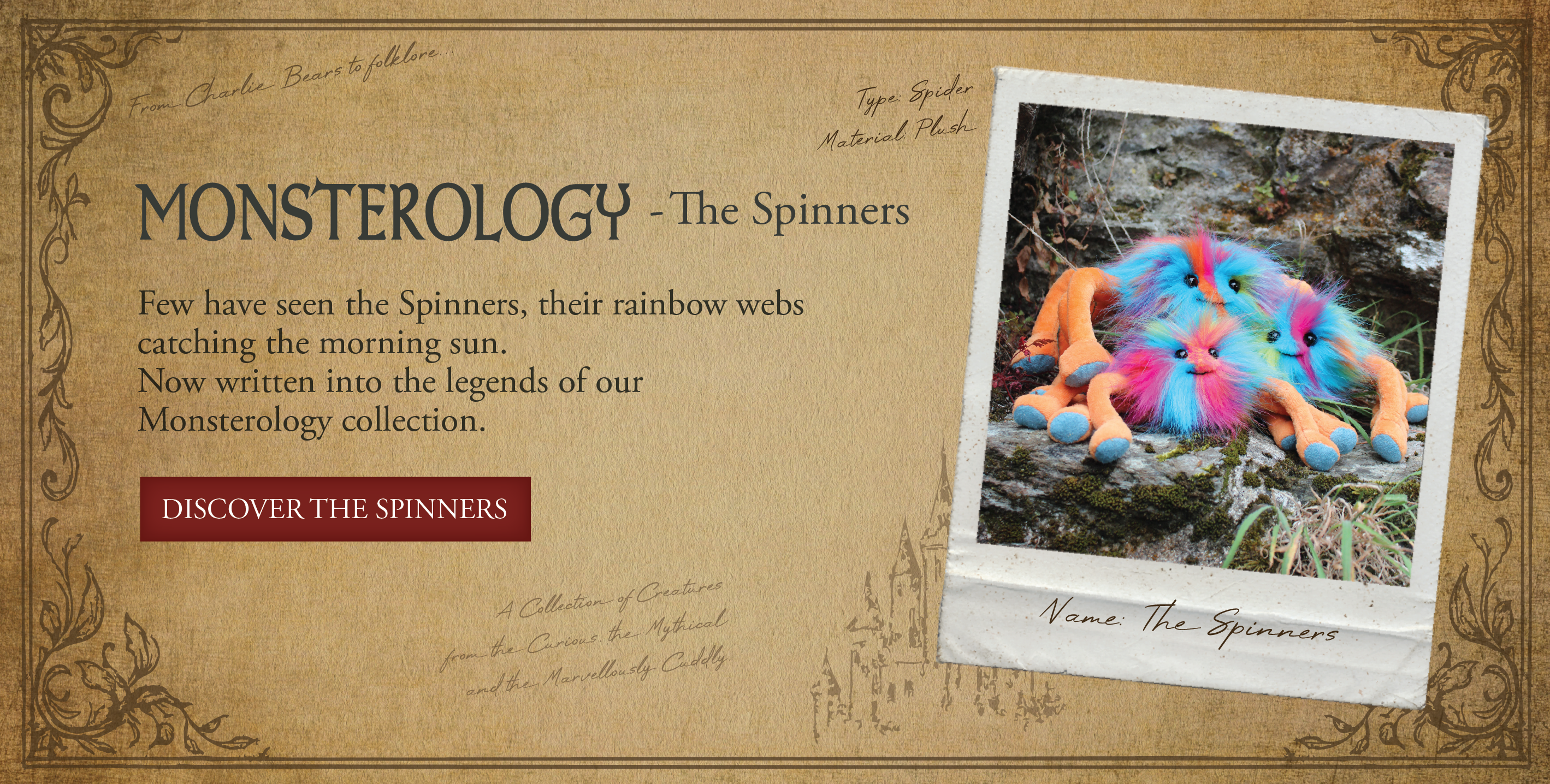 Her gentle spirit and caring nature make her the ideal plush pal – from looking after her little one Cedric to spinning playful webs with her partner Cecil, Cherie adds a touch of magic and love wherever she goes.