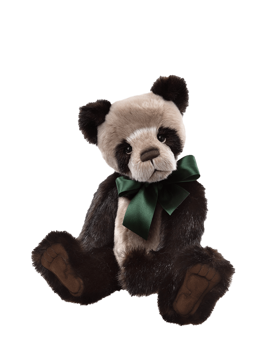 Meet Botwood, a delightfully soft panda featuring a luxurious blend of dark brown, black and beige fur, paw-fectly complemented by a beautiful green ribbon tied neatly around his neck. His sculptured paw pads and delicately hand-embroidered nose are just some of the examples of the expert love and care placed into his creation. With his gentle expression and cuddly design, Botwood is ready to bring comfort and joy wherever he goes, he simply can’t wait to snuggle up with you! Suitable for ages 3 years+. Panda height: 43cm/17"/14.3 Bear Paws. To register your interest in Botwood, please send us a message to cubhouse@charliebears.com.
