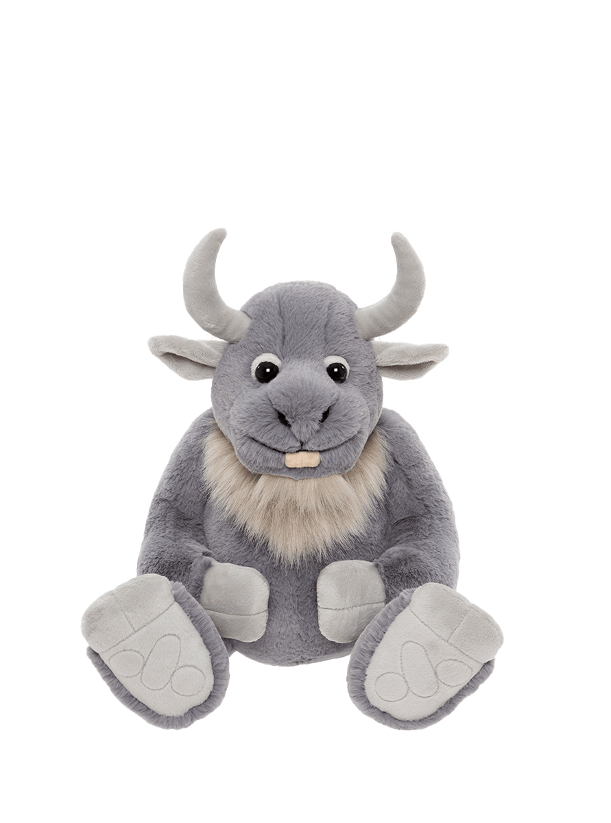 Crafted from luxuriously soft grey plush with lighter accents, Cobblestone has a soft beard, curved horns, and friendly expression which give him unmistakable character. Broad paws and detailed stitching add to his solid, comforting presence. He’s a true gentle giant, strong, steady, and full of heart. His non-jointed, machine-washable design makes him easy to care for and always ready for another day by your side.