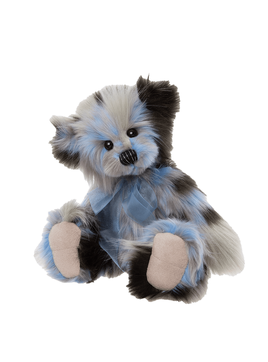 Miss Liddell is a bear-utifully crafted teddy bear, made from luxuriously soft plush in a stunning blend of grey, black, and blue tones. Her sweet little nose is delicately hand-embroidered in black with silver over-stitching, and her soft beige paw pads are perfect for the gentlest cuddles. Around her neck, she wears a delicate blue organza bow that makes her look simply enchanting. With her striking multicoloured coat and irresistibly snuggly feel, Miss Liddell is a true standout in any hug. Suitable for ages 3 years+. Bear height: 30cm/12"/10 Bear Paws. To register your interest in Miss Liddell, please send us a message to cubhouse@charliebears.com.