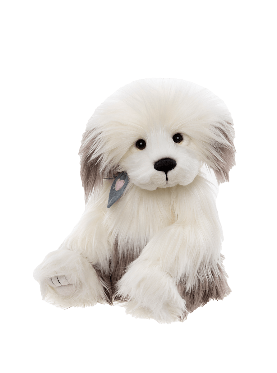 Fully jointed for playful poseability, Old Faithful is a charming pup crafted from luxuriously soft, long-pile plush in gentle cream and grey-brown tones. His hand-embroidered nose, sculpted paws, and endearing expression bring him to life with irresistible character. A stylish neckerchief adds a touch of personality, perfectly complementing his warm and loyal spirit. Old Faithful captures the steadfast loyalty and warmth that make dogs such treasured companions. Welcome this lovable pup into your home and let him be by your faithful friend through every adventure! Suitable for ages 3 years+. Dog height: 46cm/18”/15.3 Bear Paws.