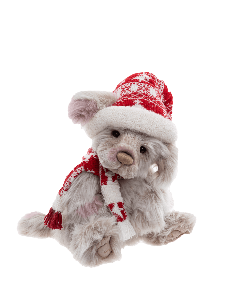 Say hello to Papplewick, an irresistibly adorable puppy crafted from the softest plush imaginable. With his fluffy grey fur accented by subtle pink patches, Papplewick has a sweet, distinctive charm that makes him truly stand out in any hug. Dressed for the chilly months ahead, Papplewick wears a vibrant red and white woolly hat and matching scarf, adding a festive touch to his cosy appearance. He’s fully jointed and hand-finished with care, featuring beautifully sculpted paw pads that highlight his high-quality craftsmanship and attention to detail. But what really sets him apart is his signature “Who, me?” endearing expression that makes him impossible to resist. Suitable for ages 3 years+. Puppy height: 38cm/15”/12.7 Bear Paws.