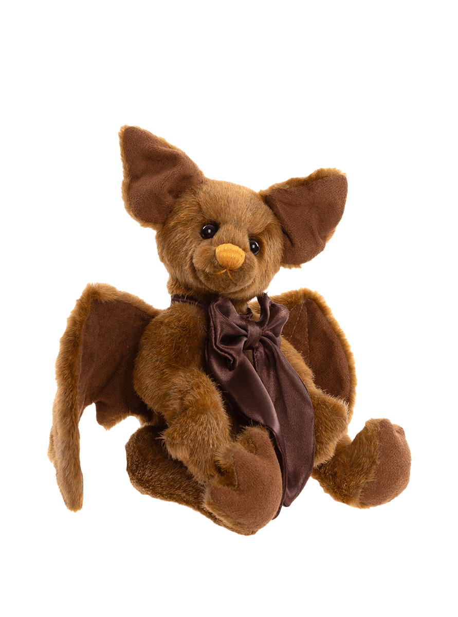Pippy Strell is an irresistibly cuddly bat, lovingly crafted from soft, short-pile brown plush. With his oversized ears and large, expressive wings, Pippy captures the quirky charm of these nocturnal creatures. He features a delicately hand-embroidered orange nose, charming bat-shaped feet, and a silky chocolate brown bow tied neatly at his neck. Designed with care and character, Pippy Strell is perfect for imaginative play, snuggly companionship or as a unique display piece. Suitable for ages 3 years+. Bat height: 23cm/9”/7.7 Bear Paws
