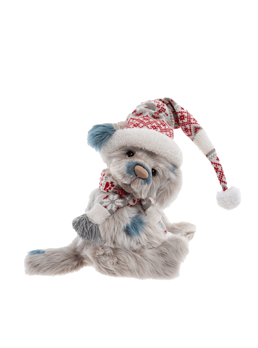 Meet Puddletown, a heart-melting little pup made from unbelievably soft plush. His fluffy grey coat, touched with hints of blue, gives him a uniquely lovable look that stands. Ready for frosty days, he’s bundled in a cheerful red, white, and grey knitted hat with a matching scarf that adds to his winter charm. Fully jointed and carefully hand-finished, Puddletown shows off finely detailed paw pads that speak to his exceptional craftsmanship. And, of course, his adorable “Who, me?” expression is the finishing touch that makes him utterly irresistible. Suitable for ages 3 years+. Puppy height: 38cm/15”/12.7 Bear Paws. To register your interest in Puddletown, please email us at cubhouse@charliebears.com.