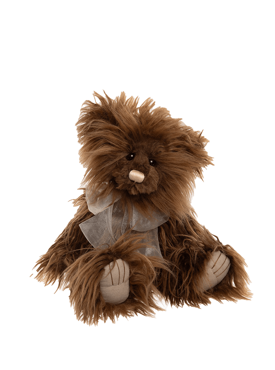 Meet the charming Rumbledethumps, whose fluffy, tousled fur invites endless cuddles. Crafted from luxuriously soft, long-pile rich brown plush, he radiates warmth and cosiness. With a hand-embroidered light nose, shaved muzzle, expressive dark eyes, and tickly toe detailing, every deatil brings him to life. A white organza bow around his neck completes his irresistible look. Recommended for ages 3 years +. Bear height: 38cm/15”/12.7 Bear Paws. To register your interest in Rumbledethumps, please send us a message to cubhouse@charliebears.com.