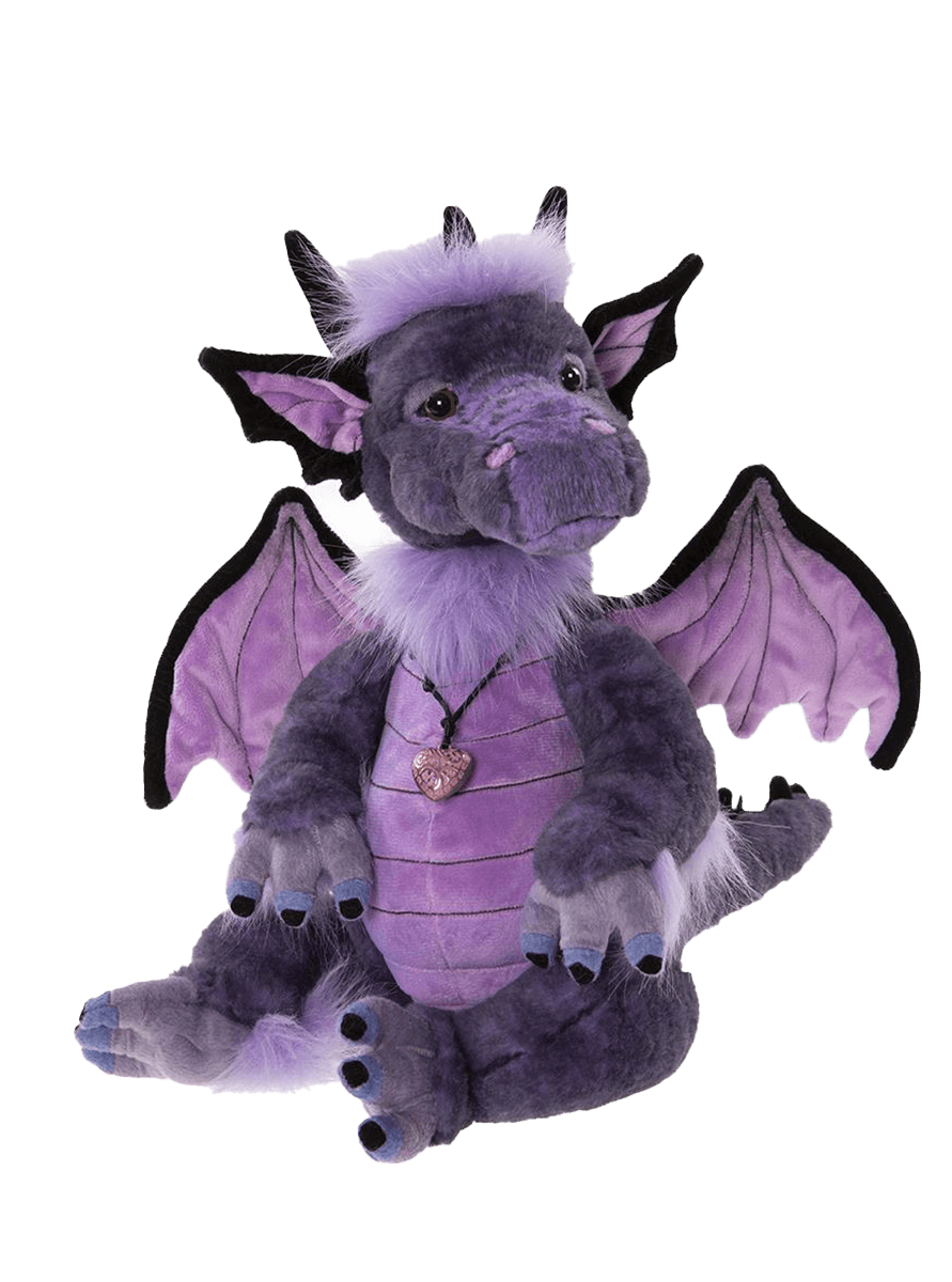 As seen on Charlie Bears TV and back by very popular demand, Scorch returns as a highly sought-after dragon. First introduced as part of the 2021 Secret Collection, Scorch sold out at incredible speed - making this a must-have opportunity for collectors who missed him the first time. Crafted in a rich, vibrant purple plush, Scorch features an intricate design with exceptional attention to detail. From his expressive face and sculpted wings to his soft plush textures, every element has been thoughtfully created. Adding a charming finishing touch, Scorch wears a delicate heart necklace. A true statement piece for any Charlie Bears hug, Scorch is as enchanting as he is memorable. Suitable for ages 3 years+. Dragon height: 48cm/19"/16 Bear Paws.