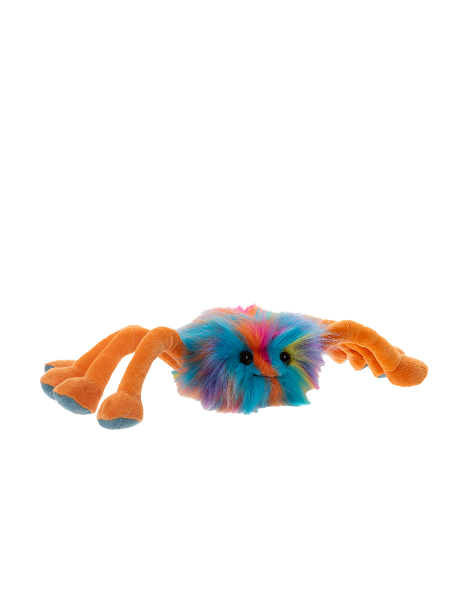 Meet Cecil, the Daddy Spinner – the wise and warm-hearted leader of the Spinner family. With his plush rainbow fuzz, velvety orange legs, and warm, welcoming eyes, Cecil is the kind of spider you’ll want to keep close. His soft, huggable body makes him the ultimate comforting companion – whether you’re settling in for story time or simply looking for a reassuring snuggle.